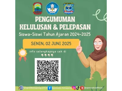 PENGUMUMAN KELULUSAN SISWA KELAS 9 ANGKATAN 38 TAHUN AJARAN 2024/2025 SMPN 1 KETAPANG Senin, 02 Juni 2025 Dengan Penuh Rasa Syukur dan Bangga,