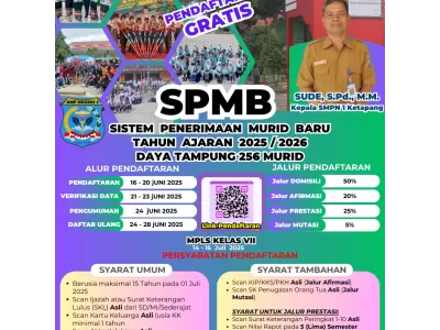 Jangan Ketinggalan! Pendaftaran Siswa Baru SMPN 1 Ketapang Tahun Ajaran 2025/2026 Telah Dibuka – Kuota Terbatas! KETAPANG – Kabar gembira bagi