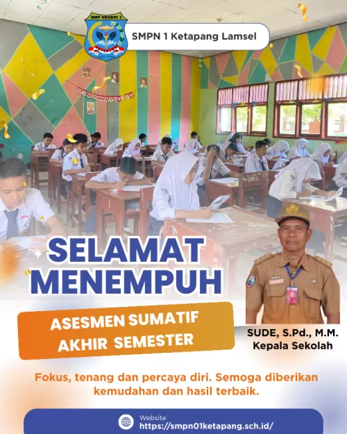 Kepala SMPN 1 Ketapang, Bapak Sude, S.Pd., M.M., menyampaikan apresiasinya kepada seluruh siswa dan guru atas kelancaran dan integritas selama pelaksanaan ASAS ini. "Kami bangga melihat semangat dan keseriusan anak-anak dalam menghadapi ASAS. Ini menunjukkan bahwa mereka siap melangkah ke jenjang berikutnya dengan bekal ilmu dan karakter yang kuat," ujar beliau.